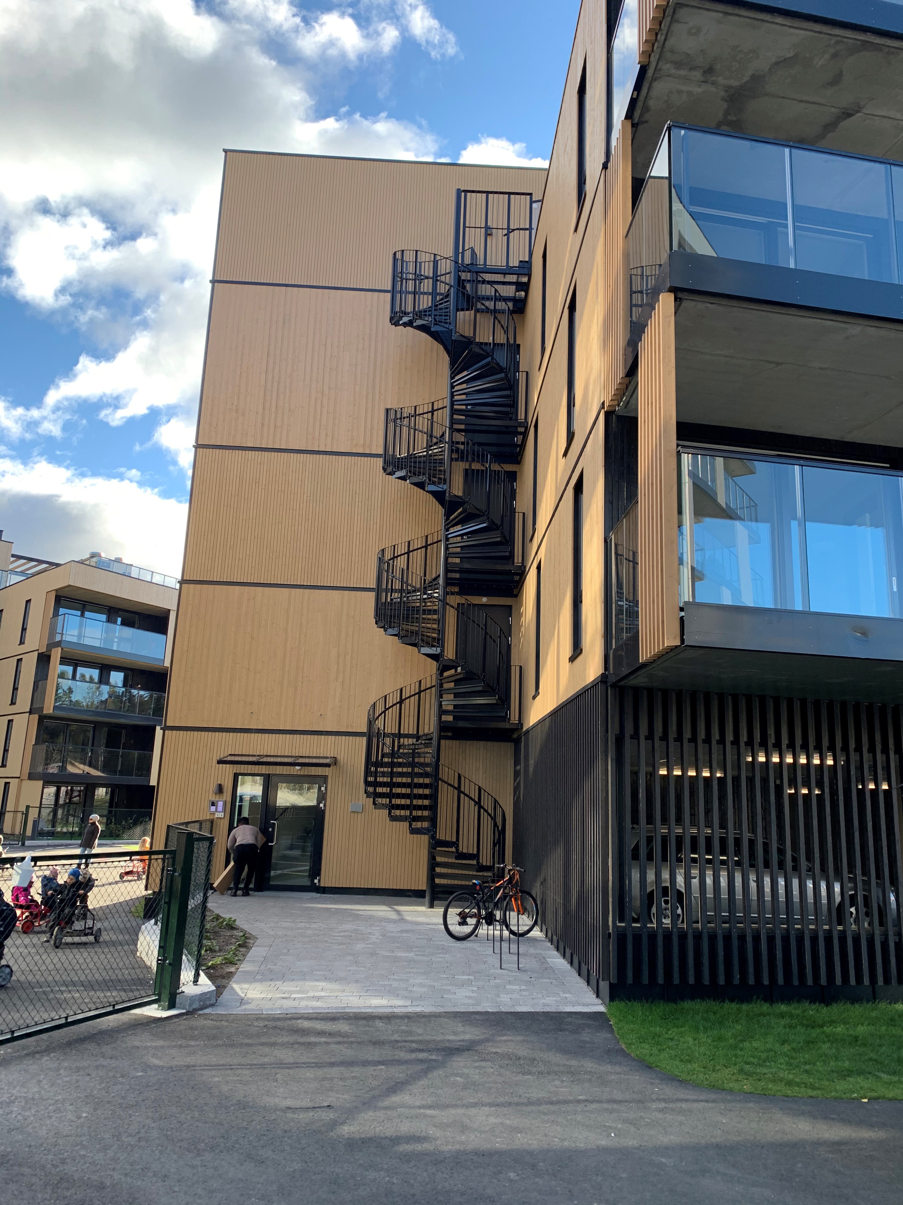 Vi leverer spiraltrapper både utvendig og innvendig, lakkert og ulakkert - alt etter kundens behov og ønsker. Spiraltrapper er vanligvis et krav knyttet til rømning eller tilkomst.